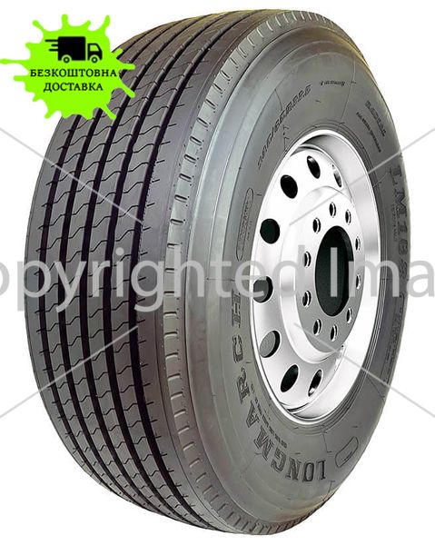 Шина LONGMARCH LM168 для причепів та напівпричепів, що використовуються для перевезення важких та надважких вантажів на великі відстані. Основні особливості: високі показники курсової стійкості та паливної економічності, рівномірний розподіл зовнішнього навантаження по плямі контакту, завдяки чому протектор набагато краще чинить опір розвитку нерівномірного зносу, що, у свою чергу, значно продовжує термін його служби; - чудове зчеплення на мокрій дорозі забезпечується великою кількістю поздовжніх дренажних канавок, а також численними хвилеподібними ламелями на поверхні центральних ребер.