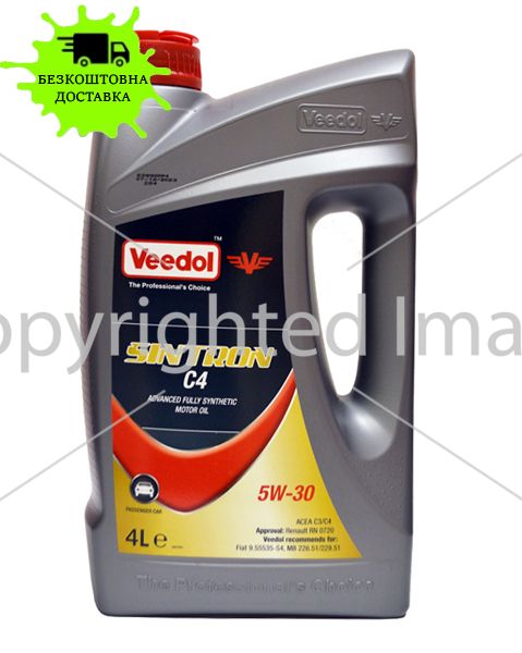 VEEDOL SINTRON C4 5W30 - це універсальна синтетична моторна олива, що економить паливо. Розроблена відповідно до самої останньої технології, на основі спеціально підібраних синтетичних базових масел. Застосування сучасних присадок посилює виняткову ефективність цієї low SAPS моторної оливи. Підходить для легкових автомобілів з чотиритактними двигунами. Воно призначене як для бензинових, так і для дизельних двигунів і відповідає стандартам ACEA C3/C4. Це масло допомагає зменшити витрати пального та має низький рівень відкладень золи, що робить його сумісним із сучасними каталізаторами.