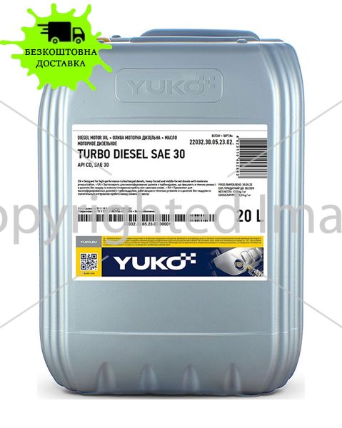 Олива моторна YUKO TURBO DIESEL SAE 30 API CD 17,5кг 20л