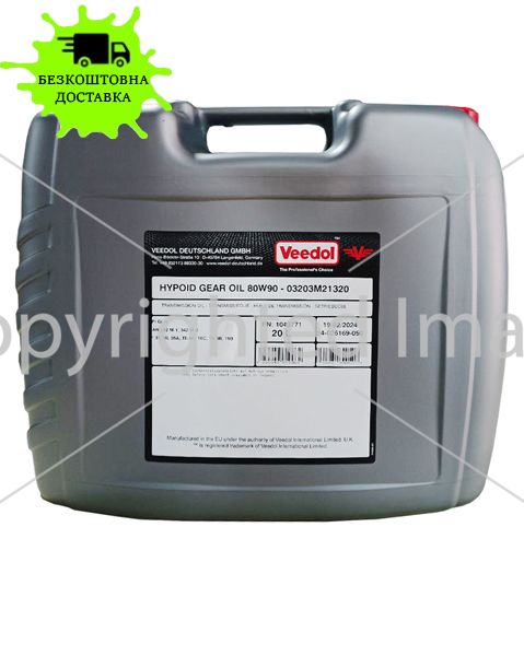 Олива трансмісійна VEEDOL HYPOID GEAR OIL 80W90 API:GL-4 20л