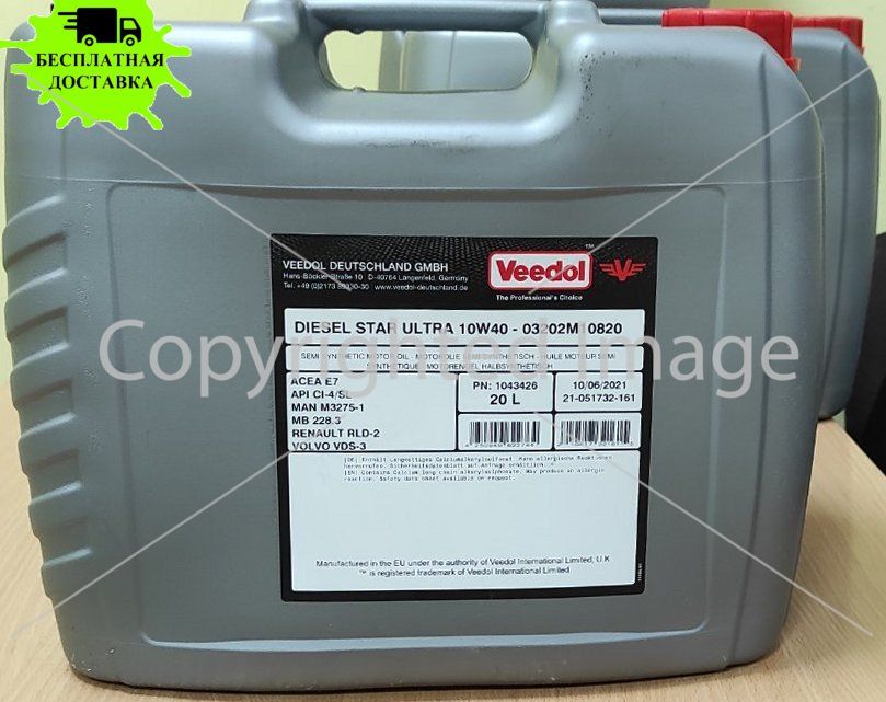 Олива моторна VEEDOL DIESEL STAR ULTRA 10W40 API:CI-4/SL,ACEA:E7 20л